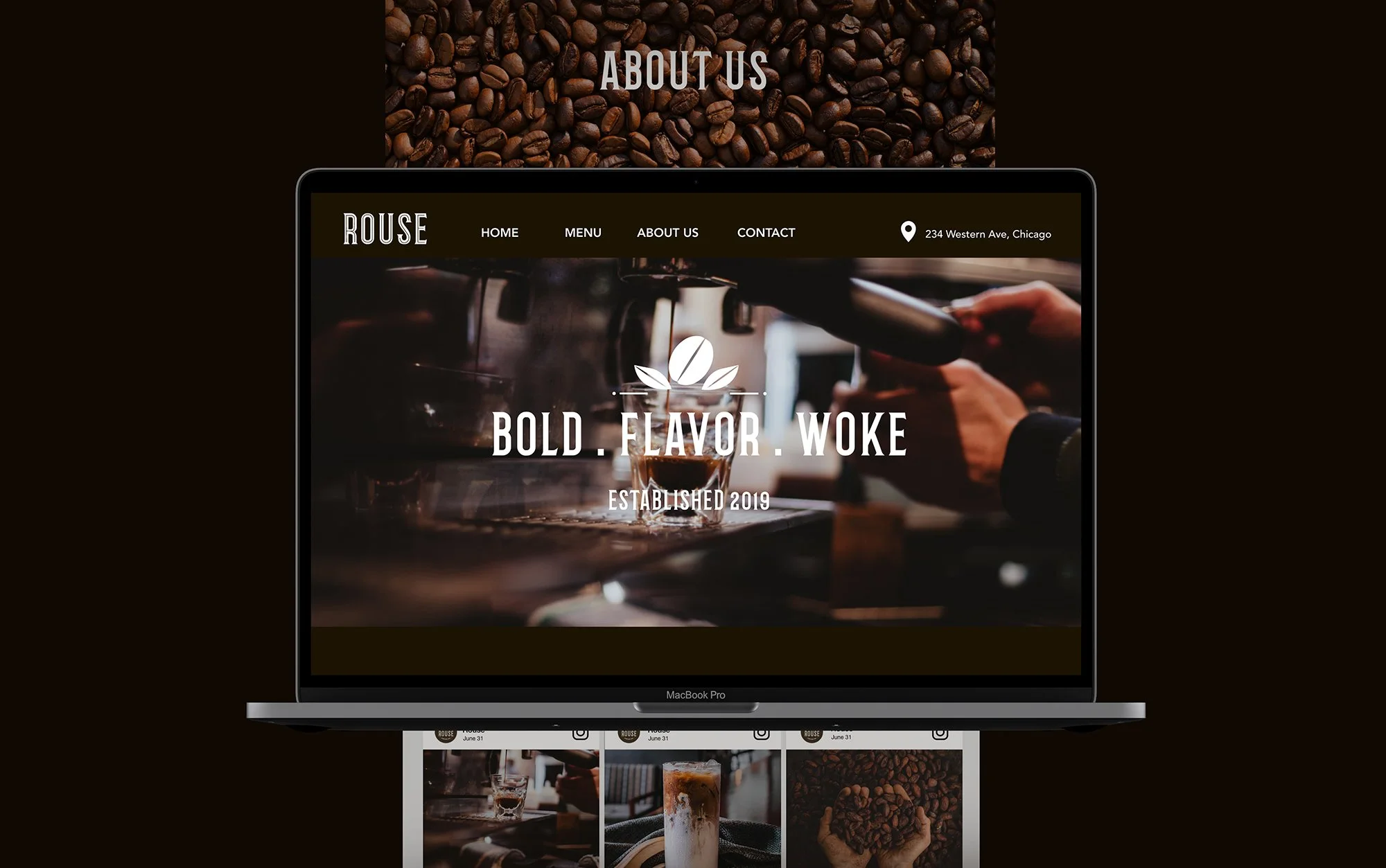 For the UI, I focused on ensuring an easy user experience with clear navigation while letting the visuals speak for themselves. The homepage prominently features high-quality coffee imagery, which gives the viewer an immediate sense of the brand's identity: Bold. Flavor. Woke. The use of sharp, elegant photography enhances this message, capturing the details of coffee brewing and cozy café moments.